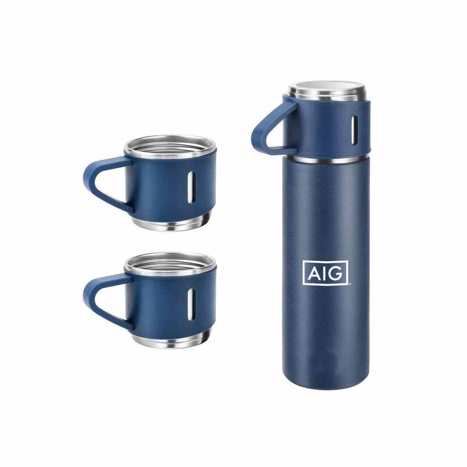 • SAFFLE - Giftology Family Set of Vacuum Flask & Two Cups - Navy Blue