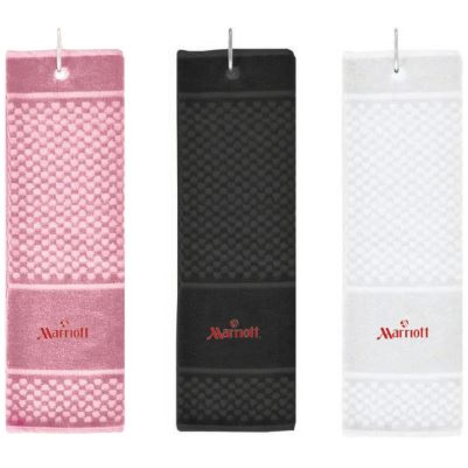 Sports cotton hand towel with carabiner clip. Great for golf, tennis, cycling, running, etc. Made with 500GSM terry cotton